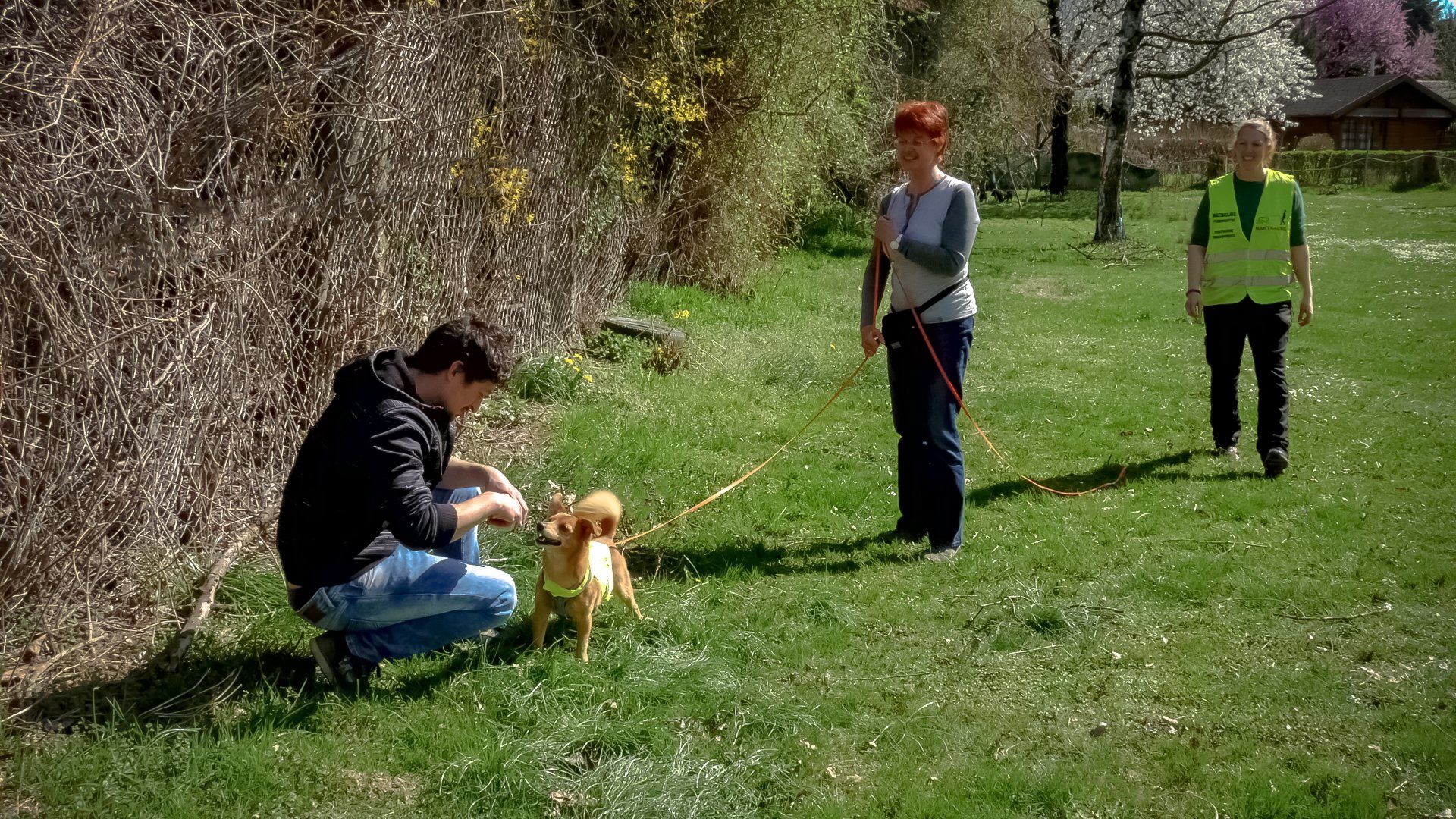 Begegnungen mit anderen Hunden und Freizeitsportlern zu trainieren und Möglichkeiten aufzuzeigen, verschiedene